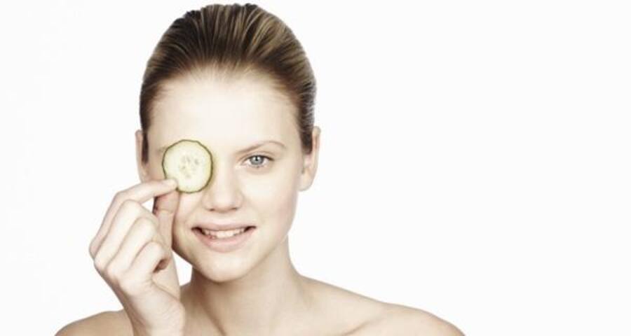 Cucumber can be used alone or in combination with other ingredients. Not only does it have a cooling effect but it also helps improve the colour of the skin around the eyes. The easiest way out is to cut a cucumber into thick slices, refrigerate them for about 30 minutes and then place lightly on your eyes. Alternatively, you can crush a little cucumber and extract the juice; apply this around the eyes, keep it on for 15 minutes and then wash with water. Adding a dash of lemon juice into the cucumber juice also helps because the latter has a bleaching action that reduces the darkness of the skin. If your eyes are puffy, mix in a little potato juice into the cucumber juice for best results. Also read about how cucumber relieves other skin problems.