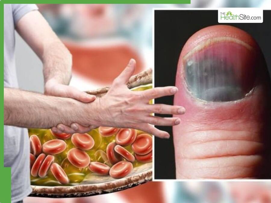 Your nails should have a healthy pinkish hue, indicating proper oxygen flow. However, pale or bluish nails (a condition known as cyanosis) may indicate reduced blood circulation due to arterial blockages from high cholesterol.