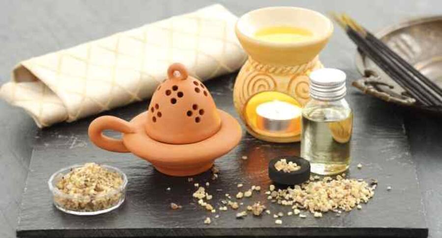 Frankincense is widely used in India as an air freshener and also for religious purposes. The resin from the bark of Boswellia serrata tree is also known as dhoop and is burnt to release the fumes which have a peculiar smell. Frankincense is often light yellow in colour and is widely used in perfumes and its essential oil is used in aromatherapy. It is believed that burning frankincense and inhaling the fumes brings good health.