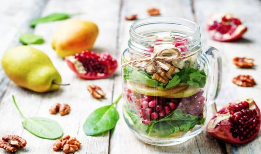 Those looking to lose weight and get fit are often told to eat salads. The problem with many salads is that they are either too bland or unhealthy. A salad needs not just wholesome ingredients, it also needs a good dressing to make it tasty. Many salad dressings are high in calories because they are made with ingredients like mayonnaise, bacon, fried meat etc. that are high in sodium, unhealthy fats, sugars and even preservatives. This can completely ruin your weight loss goals. This Pear and Pomegranate Salad with Poppy Seed Dressing recipe by celeb fitness experts Radhika Karle is the perfect salad recipe because it is high in taste and nutrition but low in calories. Pomegranate is good for heart health, lowering blood pressure, improving digestion, boosting immunity and testosterone levels. Pear is a source of natural fibre and is excellent for keeping you full and providing you with energy. Walnuts with their high omega 3 fatty acids content can reduce your risk of cancer, heart diseases, obesity, wrinkles and other signs of ageing and deal with reproductive problems in men. You must try making recipe if you are trying to lose weight in a healthy way.