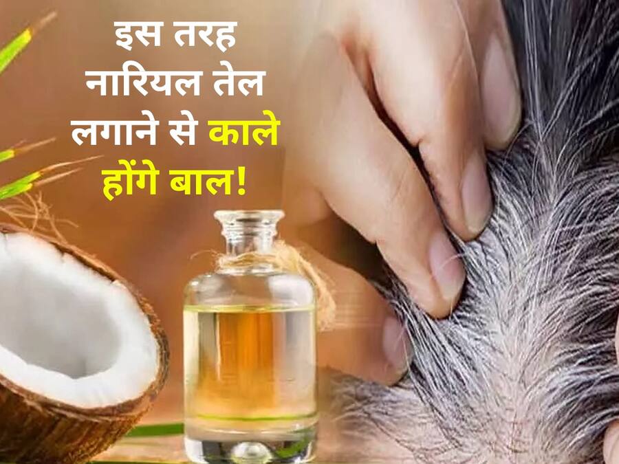 नारियल तेल में एंटीऑक्सीडेंट्स, एंटी-इंफ्लमेटरी जैसे गुण होते हैं, जो आपके बालों में ब्लड सर्कुलेशन में सुधार कर सकते हैं। इससे बालों को सफेद होने से रोका जा सकता है। अगर आप चाहते हैं आपके बाल उम्र से पहले सफेद न हो, तो आप नारियल तेल का प्रयोग नियमित रूप से करें।