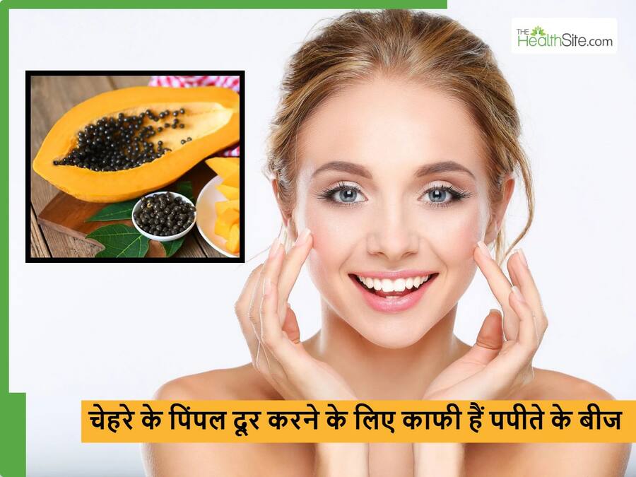 पपीते के बीज पिंपल्स की समस्या को दूर करने में मदद करते हैं। इसलिए आप पपीते के कुछ बीजों को पीसकर उसका पेस्ट तैयार करें। इसे चेहरे पर पिंपल्स वाले स्थानों पर लगाएं। बीजों में मौजूद एंटी बैक्टीरियल गुण पिंपल्स की सूजन और संक्रमण को कम करने में मदद करेंगे। इसे 15-20 मिनट तक छोड़ें और फिर गुनगुने पानी से धो लें।