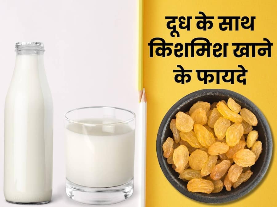 अगर आप वजन बढ़ाना चाहते हैं, तो अपनी डाइट में दूध और किशमिश को शामिल कर सकते हैं। नियमित रूप से दूध में किशमिश मिलाकर पीने से आपको हेल्दी तरीके से वजन बढ़ाने में मदद मिल सकती है। इसके लिए आप एक गिलास दूध में 5-6 किशमिश डालकर पिएं। इसके नियमित सेवन से आपको जल्द ही फर्क नजर आने लगेगा।
