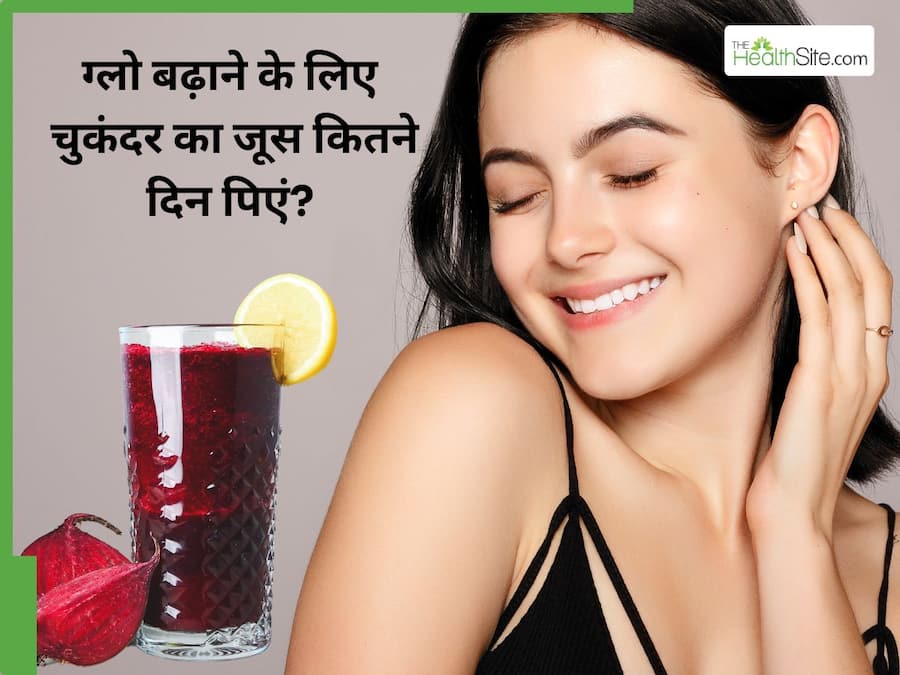 चेहरे का ग्लो बढ़ाने के लिए आपको रोजाना चुकंदर का जूस जरूर पीना चाहिए। रोजाना चुकंदर का जूस पीने से त्वचा के दाग-धब्बे दूर होते हैं। इससे त्वचा का निखार बढ़ता है। साथ ही, त्वचा की रंगत में भी सुधार होता है। चेहरे पर ग्लो लाने के लिए आप 1-2 महीने तक रोजाना चुकंदर का जूस जरूर पिएं। 2 महीने तक चुकंदर का जूस पीने से स्किन का ग्लो बढ़ेगा।