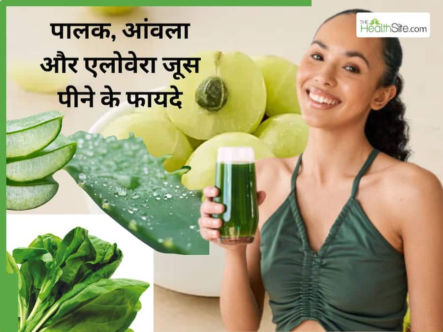 Palak Amla ALoevera Juice Benefits in Hindi: पालक, आंवला और एलोवेरा, तीनों ही सेहत के लिए फायदेमंद होते हैं। अधिकतर लोग इन तीनों का अलग-अलग तरीकों से सेवन करते ही हैं। लेकिन, आप चाहें तो पालक, आंवला और एलोवेरा का सेवन एक साथ भी कर सकते हैं। इन तीनों का जूस के रूप में सेवन किया जा सकता है। आप रोज सुबह खाली पेट पालक, आंवला और एलोवेरा जूस (Palak Amla Aloevera Juice) पी सकते हैं। अगर आप रोज सुबह खाली पेट इस जूस का सेवन करेंगे, तो इससे कई तरह की स्वास्थ्य समस्याएं दूर होंगी। पालक, आंवला और एलोवेरा जूस पीने से पाचन-तंत्र और त्वचा से जुड़ी समस्याएं दूर होती हैं। आइए, जानते हैं रोज सुबह खाली पेट पालक, आंवला और एलोवेरा जूस पीने के फायदे (Benefits of Drinking Palak Amla Aloevera Juice in Hindi)-