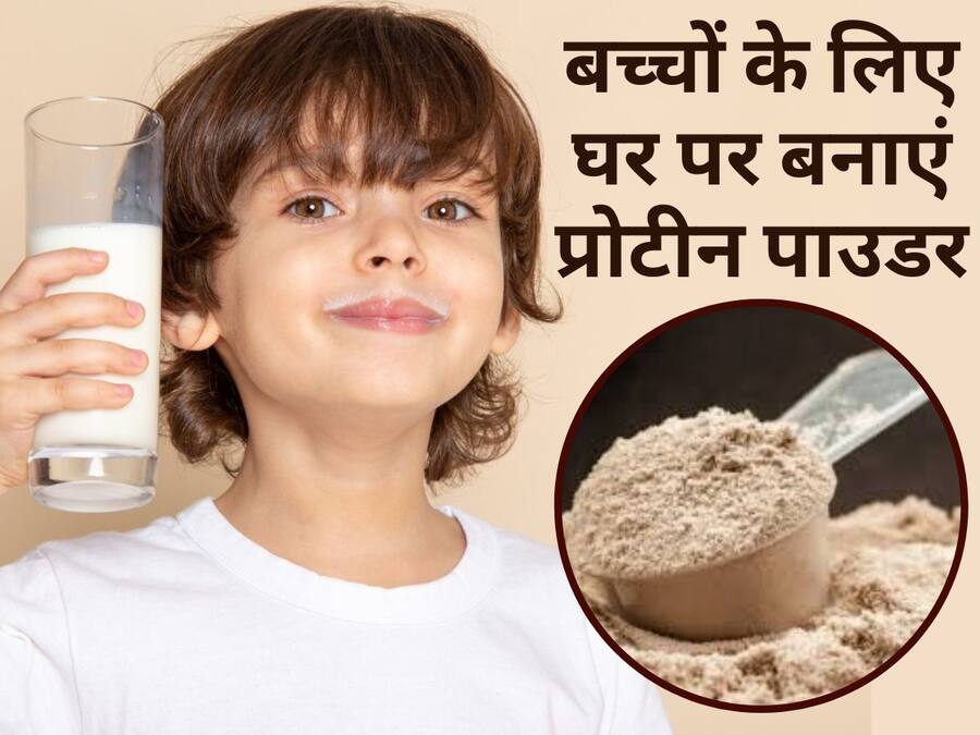 Homemade Protein Powder Recipe In Hindi: बच्चों के संपूर्ण विकास के लिए कई तरह के पोषक तत्व जरूरी होते हैं। प्रोटीन भी ऐसा ही एक पोषक तत्व है, जो शरीर के लिए बहुत जरूरी होता है। खासकर, बढ़ती उम्र के बच्चों को प्रोटीन की आवश्यकता अधिक होती है क्योंकि यह उनकी मांसपेशियों के विकास में मदद करता है। साथ ही, लंबाई बढ़ने में भी मदद करता है। आजकल अधिकतर पेरेंट्स बच्चों को मार्केट में मिलने वाले प्रोटीन पाउडर, ड्रिंक्स और स्प्लीमेंट्स देते हैं। लेकिन मार्केट में मौजूद प्रोडक्ट्स में अधिक मात्रा में शक्कर और हानिकारक केमिकल्स का इस्तेमाल किया जाता है, जो बच्चों की सेहत के लिए नुकसानदायक हो सकता है। ऐसे में, आप चाहें तो घर पर ही हेल्दी और टेस्टी प्रोटीन पाउडर बनाकर बच्चों को दे सकते हैं। इस पाउडर को दूध में मिलाकर पीने से बच्चों की सेहत को कई फायदे मिलेंगे। तो आइए, जानते हैं बच्चों के लिए घर पर प्रोटीन पाउडर बनाने का तरीका -