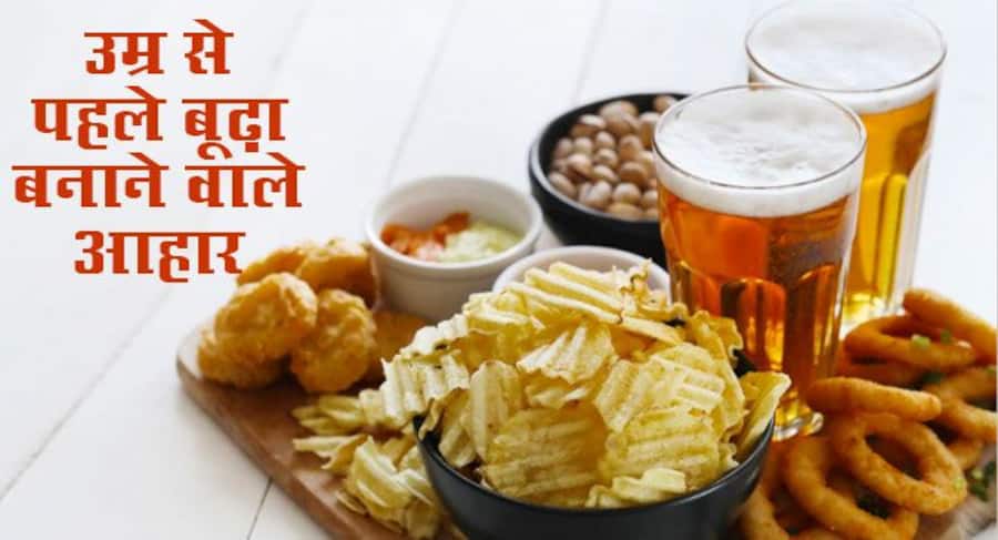 यदि हम अपने शरीर के अनुसार खाना नहीं खाते हैं तो वह हमारे शरीर के लिए हानिकारक साबित होने लगता है। वह हमें न केवल अंदर से नुक़सान पहुंचाना शुरू कर देता है बल्कि उसका असर हम अपनी स्किन पर भी देख सकते हैं। यदि आपकी स्किन भी बहुत डल व बहुत खराब दिखती है जिस वजह से आपकी उम्र ज्यादा दिखाई देती है, ऐसे में आपको अपने खानपान पर विशेष ध्यान रखना चाहिए। आपको ऐसे फूड से दूर रहना चाहिए, जो हेल्दी नहीं हैं। क्योंकि ऐसे फूड आपको समय से पहले बूढ़ा (Worst Food That Causes Aging) बना सकती है। आपको कुछ चीजें खानी बंद कर देनी चाहिए।