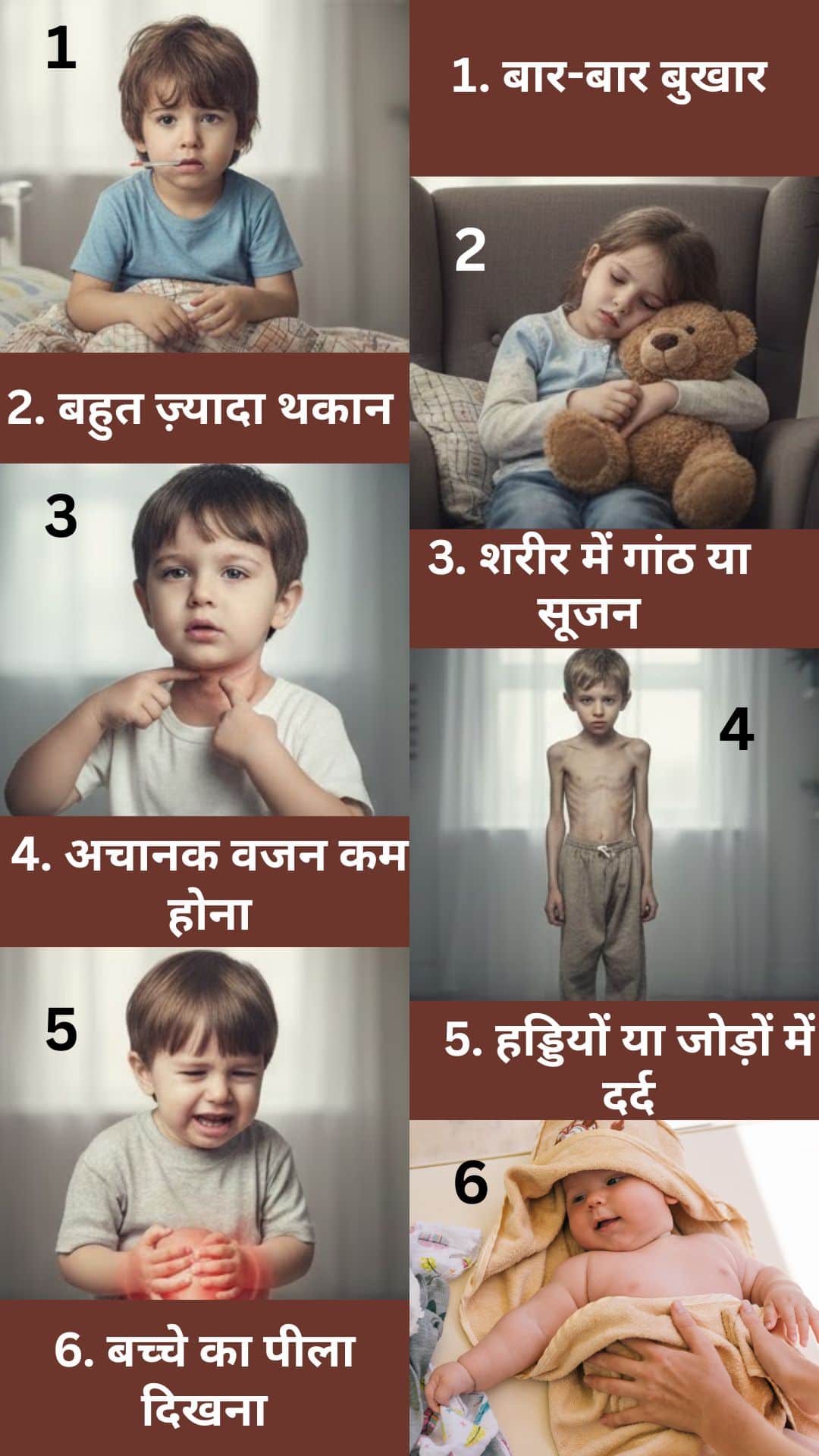 अगर बच्चे में लंबे समय तक ये लक्षण रहें, तो डॉक्टर को दिखाएं- बार-बार बुखार, बहुत ज्यादा थकान, शरीर में गांठ या सूजन, अचानक वजन कम होना, हड्डियों या जोड़ों में दर्द और बच्चे का पीला दिखना। ये लक्षण हमेशा कैंसर नहीं होते, लेकिन जांच जरूरी है।