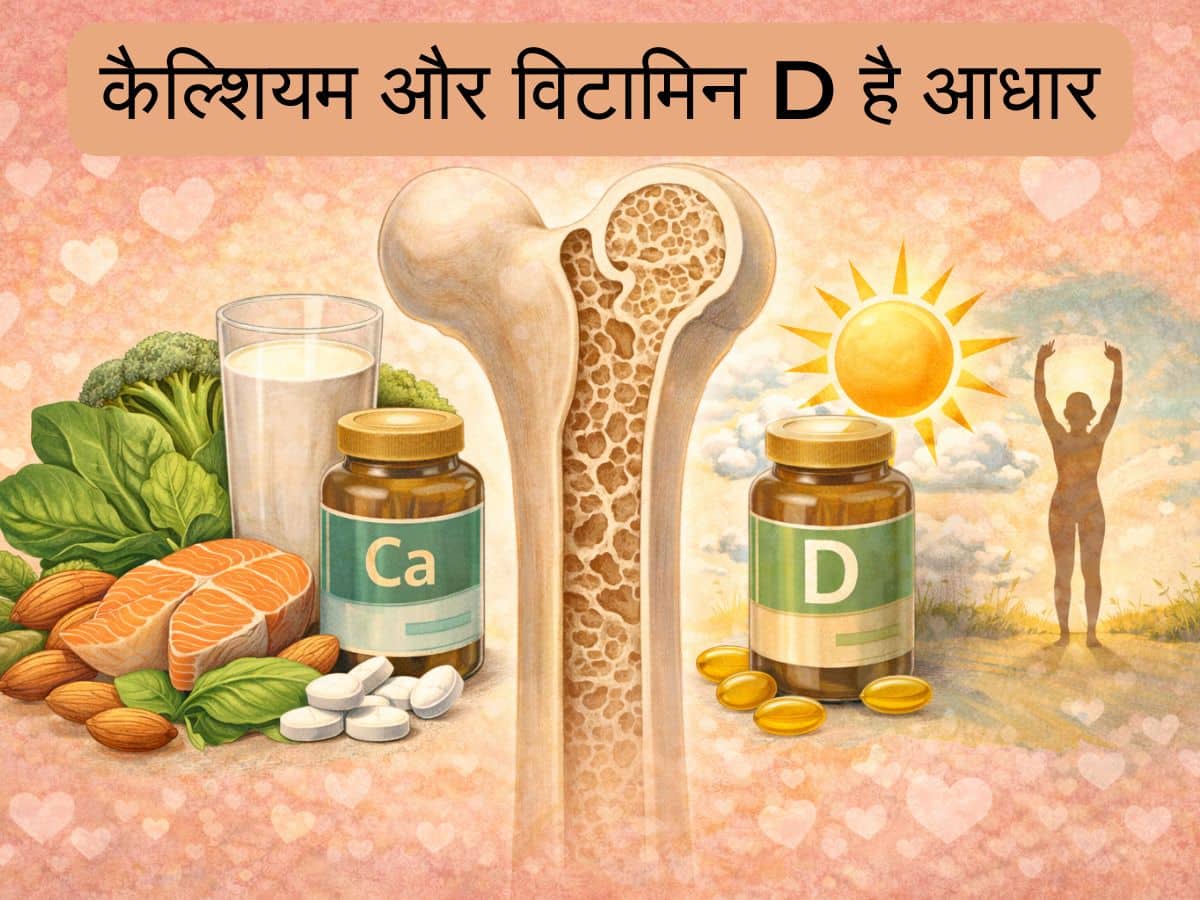 हड्डियों की मजबूती के लिए कैल्शियम सबसे जरूरी तत्व है। दूध, दही, पनीर, हरी पत्तेदार सब्जियां, तिल, सोया और बादाम अच्छे स्रोत हैं। 40 वर्ष के बाद प्रतिदिन पर्याप्त कैल्शियम लेना अनिवार्य हो जाता है। इसके साथ ही विटामिन D जरूरी है, क्योंकि यह कैल्शियम के अवशोषण में मदद करता है। रोज सुबह 15–20 मिनट धूप में बैठना लाभकारी है। जरूरत पड़ने पर डॉक्टर की सलाह से सप्लीमेंट भी लिया जा सकता है।