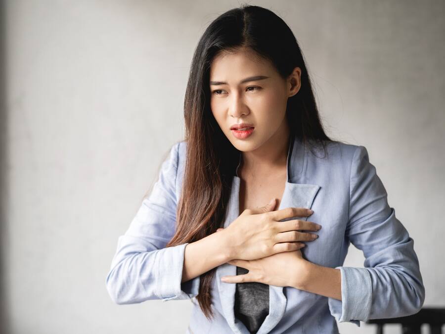 इसका सबसे मुख्य लक्षण छाती में दर्द होना और असहज महसूस होना होता है और यह दर्द अचानक से होता है और काफी बढ़ता जाता है। यह दर्द बाद में जबड़े, गर्दन, कंधे और बाजू तक फैल जाता है और हार्ट अटैक जैसा लगता है। इसके साथ ही सांस कम आना, थकान होना, चक्कर आना और जी मिचलाना जैसे लक्षण आदि शामिल हैं। धड़कन तेज होना भी इस स्थिति का एक आम लक्षण है।