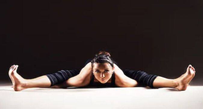 1. एक योगा मैट लें और इस पर अपने पैरों को आगे की ओर फैलाते हुए बैठ जाएं।