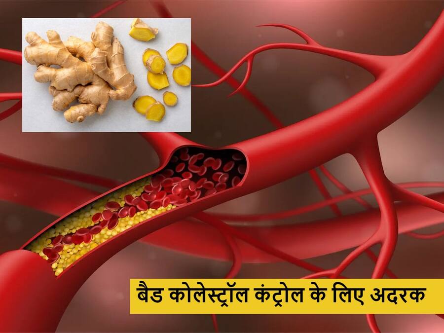 What to use with ginger to control bad cholesterol: अदरक को स्वास्थ्य के लिए बेहद लाभदायक माना जाता है। यह एक प्राकृतिक औषधि के रूप में सदियों से इस्तेमाल किया जाता रहा है और इसके अनेक स्वास्थ्य लाभ हैं। अदरक में मौजूद एंटीऑक्सीडेंट, एंटी-इंफ्लेमेटरी, और एंटी-बैक्टीरियल गुण इसे स्वास्थ्य के लिए बहुत प्रभावी बनाते हैं। अदरक पाचन तंत्र को मजबूत करता है और गैस, अपच, और एसिडिटी की समस्याओं को कम करता है। यह आंतों के कामकाज को सुचारू बनाता है और कब्ज में भी राहत प्रदान करता है। यह रक्त परिसंचरण में सुधार करता है और धमनियों में जमे हुए कोलेस्ट्रॉल को कम करता है, जिससे दिल की बीमारियों का खतरा कम होता है। यह ब्लड प्रेशर को नियंत्रित करने में भी सहायक होता है। वहीं अदरक का सेवन ब्लड शुगर लेवल को नियंत्रित करता है और टाइप 2 डायबिटीज़ के रोगियों के लिए फायदेमंद होता है। अदरक इंसुलिन के प्रति संवेदनशीलता को बढ़ाता है और शुगर के स्तर को नियंत्रित रखता है। वहीं अदरक का सेवन बेड (खराब) कोलेस्ट्रॉल को कम करने के लिए एक प्रभावी और प्राकृतिक तरीका हो सकता है। अदरक में मौजूद एंटीऑक्सीडेंट, एंटी-इंफ्लेमेटरी, और लिपिड-निम्न करने वाले गुण एलडीएल (बेड कोलेस्ट्रॉल) के स्तर को कम करने में मदद कर सकते हैं। यहां कुछ तरीके बताए गए हैं, जिनसे आप अदरक का सेवन कर सकते हैं और इसके लाभ प्राप्त कर सकते हैं।
