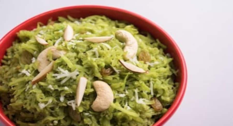 सबसे पहले भारी तलीवाले पैन में थोड़ा सा घी डालकर घर्म करें। गर्म हो जाने पर इसे कद्दूकस की हुई लौकी डालें पानी सूखने तक इसे पकाएं। इसके बाद इसमें दूध डालें। जब लौकी के नर्म होने और दूध सोख लेने तक यानी लगभग 15 से 20 मिनट तक इसे धीमी आंच पर पकाएं। जब पका रही हों तो इसे चलाती रहें ताकि यह जले न और पैन की तली में चिपके भी नहीं। अब इसमें शक्कर डालें। जब मिश्रण गाढ़ा हो जाए, तब कद्दूकस किया हुआ खोया, इलायची पाउडर, मुनक्का, काजू और बादाम डालकर पांच मिनट तक पकाएं। फिर इसमें चुटकीभर नमक डालें। चांदी का वर्क़ लगाएं। काजू, पिस्ता, बादाम और गुलाब की पंखुड़ियों से सजाकर इसे अपनी इच्छानुसार ठंडा, गर्म या कमरे के तापमान पर सर्व कर सकती हैं।
