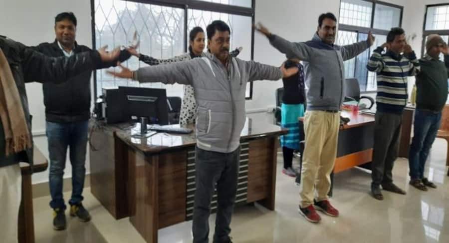 सरकारी कार्यालय में सरकारी कामों के बीच योग करने की बात सुनकर आपको भले ही आश्चर्य हो रहा हो, मगर यह सौ फीसदी सही है। बिहार में एक ऐसा सरकारी कार्यालय (Yoga in Office) है, जहां अधिकारी से कर्मचारी तक अपने कामों के बीच योगाभ्यास करते हैं, जिससे उनमें ताजगी और स्फूर्ति बनी रहे।