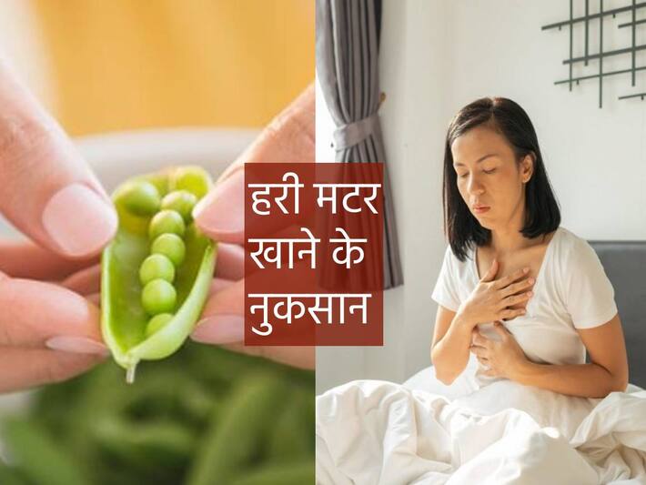 Side effects of eating green peas: विंटर सीजन की सब्ज़ियों की बात की जाए तो सबसे पहले दिमाग में जो नाम आते हैं उनमें हरी मटर भी प्रमुख है। सर्दियों के मौसम में हरी मटर (green peas) से बने परांठे, चाट और विभिन्न प्रकार की सब्ज़ियां ना केवल थाली की रौनक बढ़ाती हैं बल्कि, इस सब्ज़ी के सेवन शरीर का भी पोषण होता है। हरी मटर में विटामिन के, विटामिन सी (Vitamin C), डाइटरी फाइबर, प्रोटीन और विभिन्न प्रकार के माइक्रोन्यूट्रिएंट्स पाए जाते हैं। हरी मटर के दानों में एंटीऑक्सीडेंट्स (Antioxidants) की भी मात्रा अधिक होती है जो इम्यून सिस्टम को भी स्ट्रॉन्ग बनाते हैं। लेकिन, अगर आप सर्दियों में रोज और दिन में कई बार हरी मटर का सेवन करते हैं तो आपको ऐसा करने से बचना चाहिए। क्योंकि, अधिक मात्रा में मटर का सेवन करने से स्वास्थ्य पर बुरा असर पड़ सकता है। यहां पढ़ें हरी मटर खाने से होने वाले नुकसान के बारे में। (Side effects of eating green peas in hindi)
