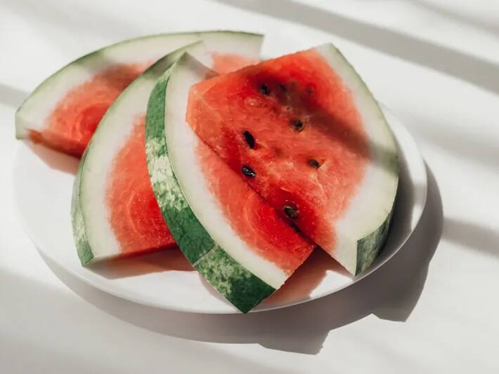 तरबूज में विटामिन ए, सी और ई भरपूर मात्रा में होते हैं, जो स्किन के स्वास्थ्य को बढ़ावा देते हैं। इसके अलावा तरबूज में लाइकोपीन जैसे शक्तिशाली एंटीऑक्सीडेंट होते हैं, जो इसे स्किन के लिए सबसे अच्छा आहार बनाता है।