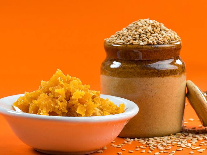 Makar Sankranti Health Tips: मकर संक्रांति में अब बस दो ही दिन बाकी हैं, लेकिन लोगों के घर में इस त्योहार को मनाने की तैयारी हफ्तेभर पहले से ही शुरु हो जाती है। कुछ लोग अपने घर पर ही गुड़ पट्टी, चिक्की व तिल के लड्डू बनाते हैं। यह स्वाद में बहुत स्वादिष्ट भी होते हैं और मिलावट न होने के कारण सेहत के लिए पूरी तरह से हेल्दी होते हैं। आज हम आपको इस लेख में मकर संक्रांति में खाए जाने वाले गुण और तिल के फायदों के बारे में बताने वाले हैं। ताकि आपको स्वाद तो मिले ही, साथ ही सेहत भी बनी रहे। तो बिना देर किए आइए हम गुण और तिल के 5 फायदों के बारे में जानते हैं।