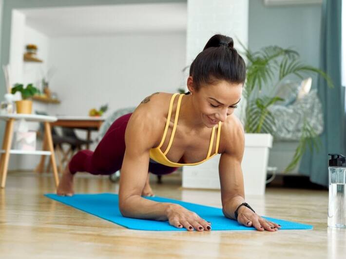 This is a full-body workout that elevates your heart rate, burns fat, and tones your belly. Mountain climbers are effective at engaging your core and increasing metabolism.