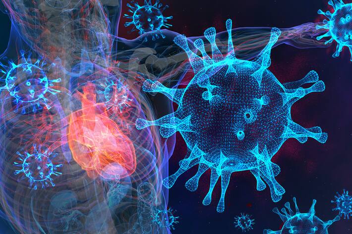 Depending upon the severity of the infection, this may lead to Heart attack, chest pain, and stroke. Dysrhythmias like atrial fibrillation. Heart failure and non-ischæmic cardiomyopathy. Clot formation and its migration (embolism) deep vein thrombosis. Pericarditis and Myocarditis are inflammations of the inner lining of the heart.