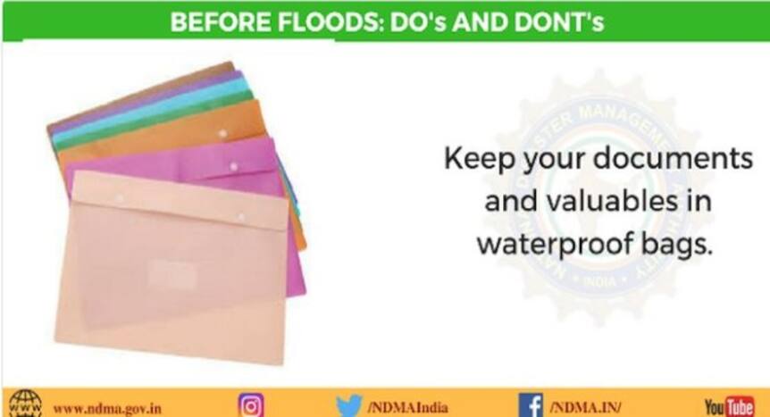 People tend to lose important documents of life during floods. Keep them safe in plastic folders.