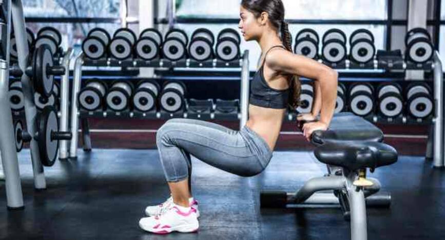 The bench dip is just like the parallel bar dip. Except, of course, you do it on the floor with the support of a bench and not on a parallel bar. The movement, however, remains the same. Place a strong bench behind your back and hold onto it with hands separated at shoulder width. Keep your legs straight ahead and lower your body to the floor. Using your triceps, you bring your body back up.