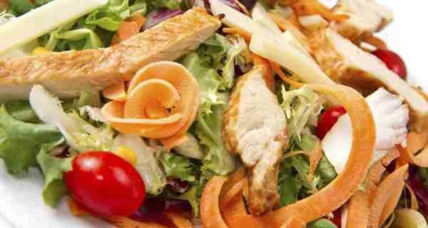 Chicken caesar salad: Caesar salad is loaded with the goodness of boiled chicken, garlic, croutons, lettuce and anchovies. Toss all these together in a bowl with some low fat mayonnaise for an instant salad.